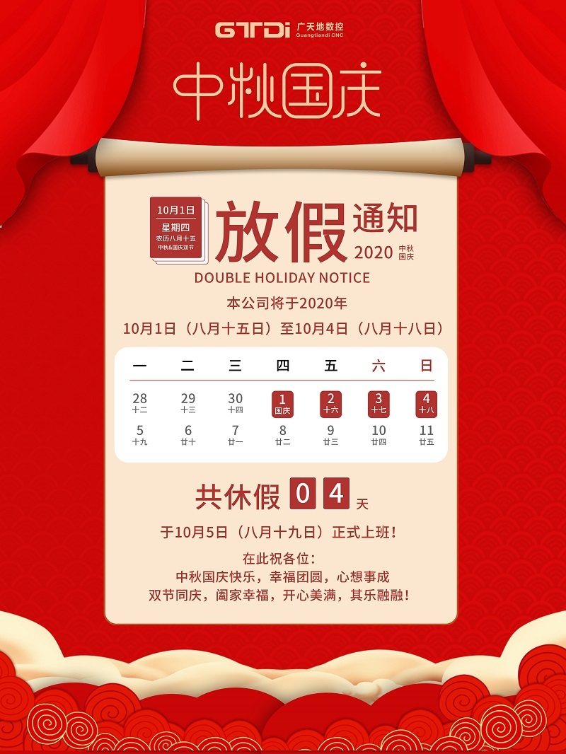 廣天地數控2020年國慶中秋節放假通知